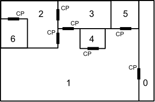 with rooms numbered 0-6